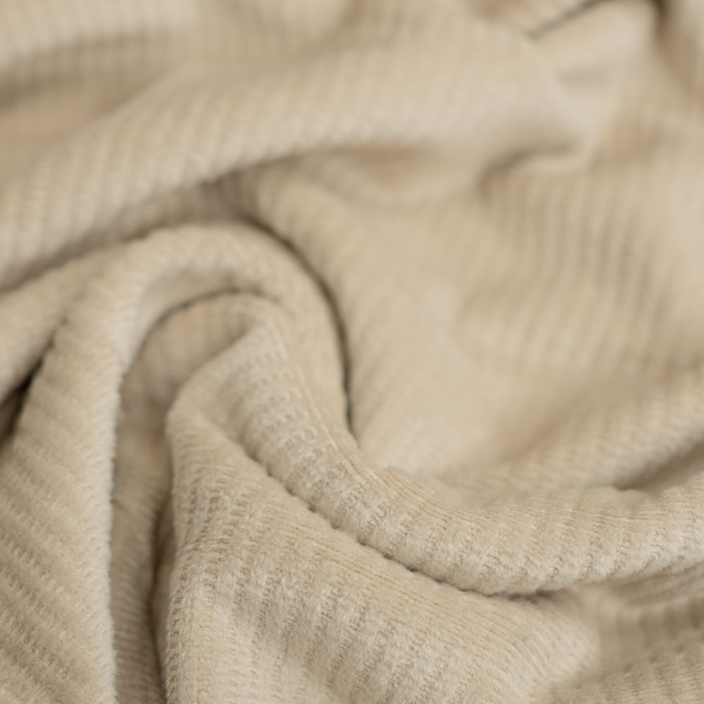 Ein super softer Feincord-Jersey, der dank seines Elasthananteils einen außergewöhnlichen Tragekomfort bietet. Die samtige Oberfläche fühlt sich besonders angenehm auf der Haut an. Durch seine Flexibilität lässt er sich wie ein Jersey verarbeiten. Die Rippen verlaufen parallel zur Webkante. Er eignet sich perfekt für vielseitige Kleidungsstücke wie Latzkleider, Pumphosen, Hosen, Röcke und vieles mehr.