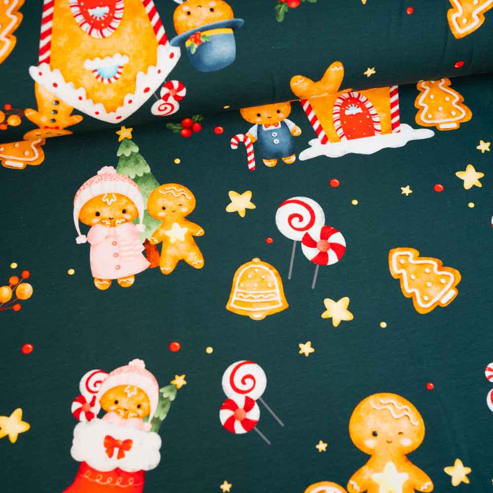 Bio-Baumwolljersey Lebkuchenmännchen tannengrün