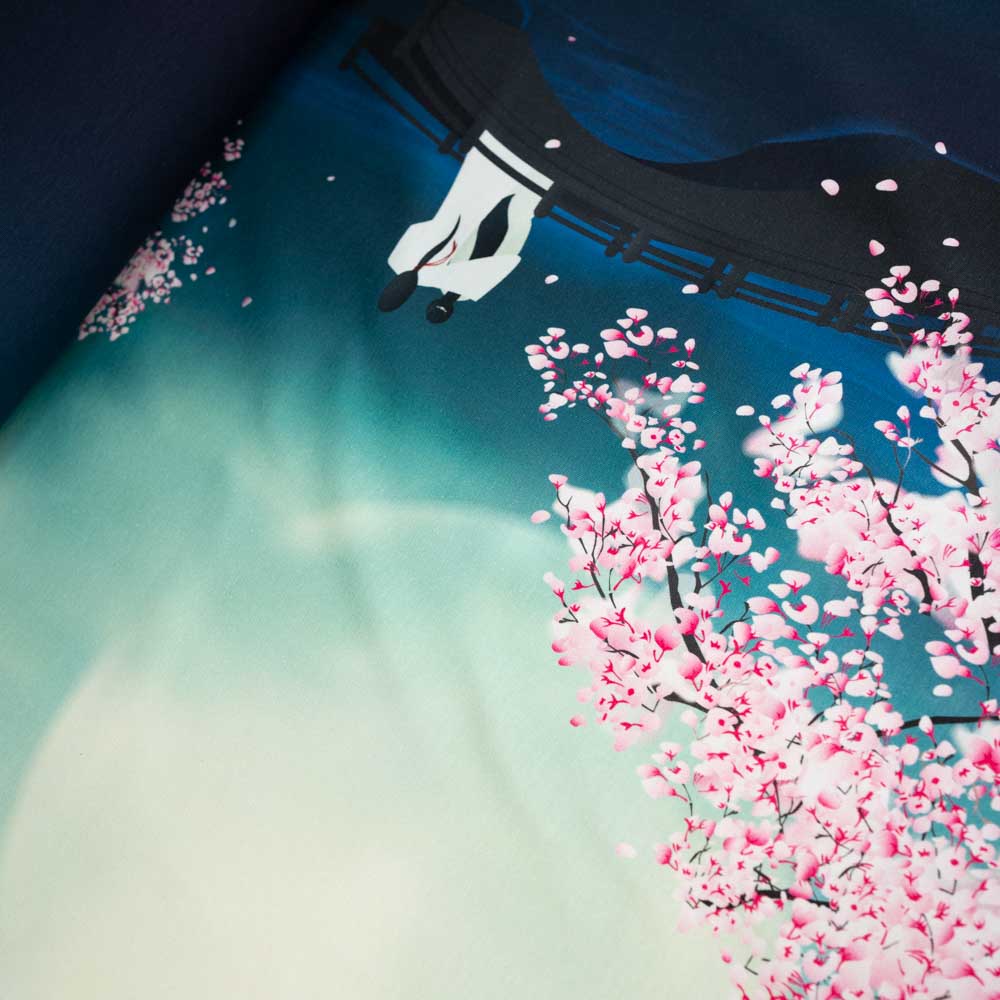 Unsere neue Eigenproduktion Rapport Japanische Kirschblüte bekommst Du auf besonders hochwertigem Baumwolljersey. Das bedeutet für dich:
