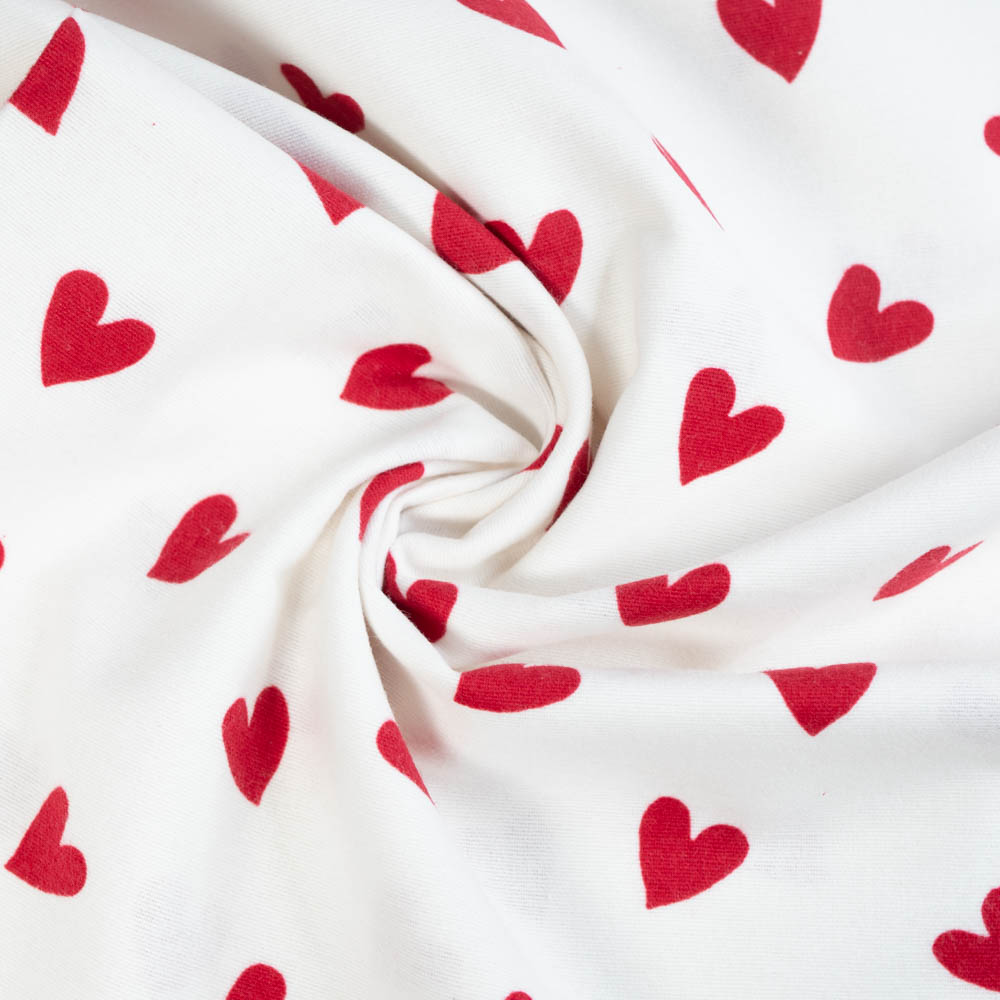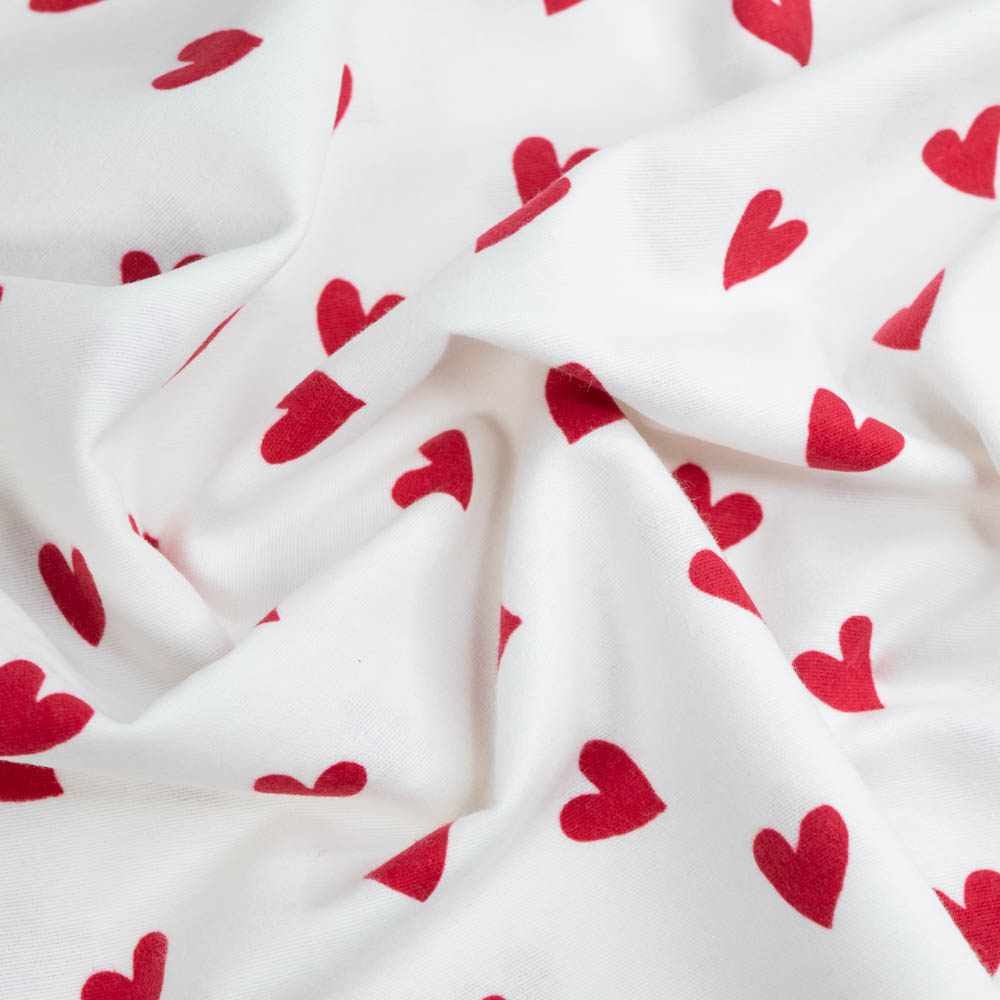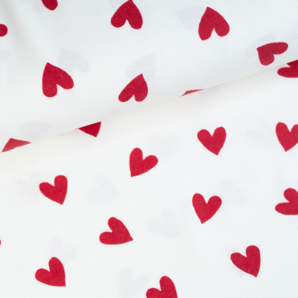 Flanell Baumwolle Herzen weiß