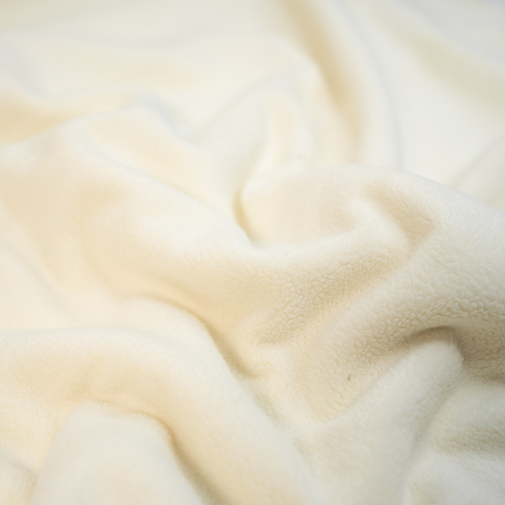 Extrem weicher und hochwertiger Fleecestoff. Es ist ein Doubleface Stoff, das bedeutet, dass die Oberseite Fleeceartig ist und die Unterseite mit längeren Fleecehärchen bestückt ist. Das Fleece ist 360gramm schwer und mit Elasthan ausgerüstet. Es ist angenehm elastisch in 4 Richtungen. Ideal für Sport Fleece Jacken, Babyjacken und Hosen.