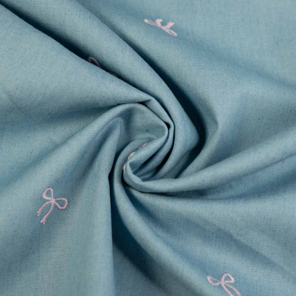 Jeans Denim Chambrai Stickerei Schleifen blau