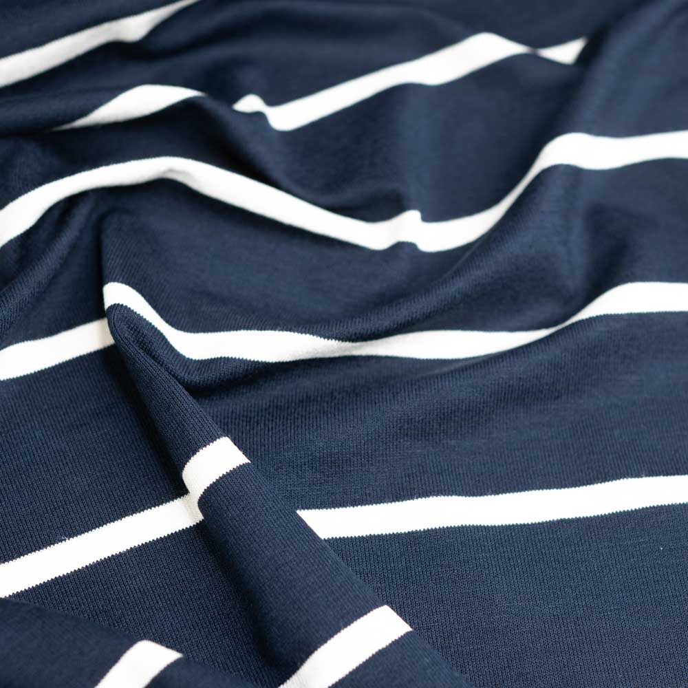 Ein weich fließender Viskosejersey mit trendigen Streifen, perfekt für leicht fallende Kleider, Röcke und Shirts.