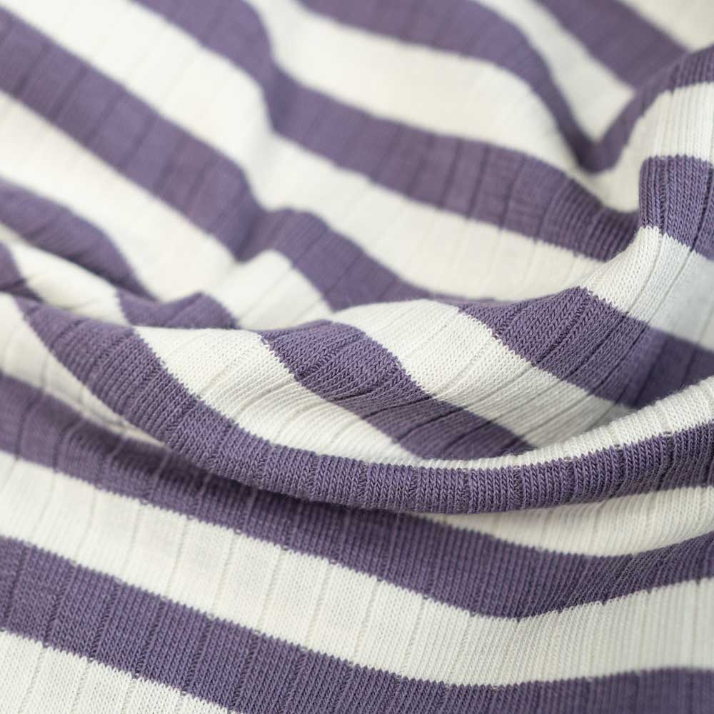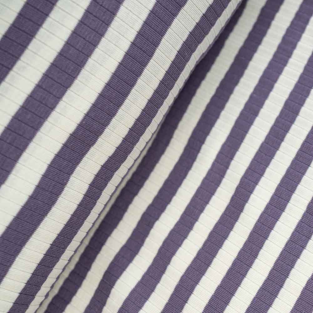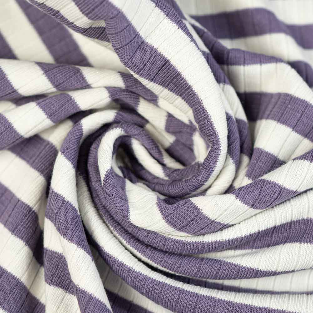 Schöner leichter Baumwolljersey mit Rippen und Streifen, er ist garngefärbt. Ideal für Tops und Shirts.