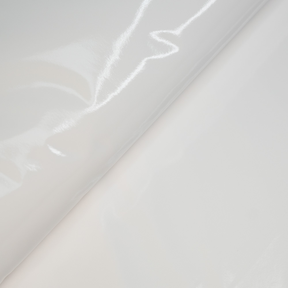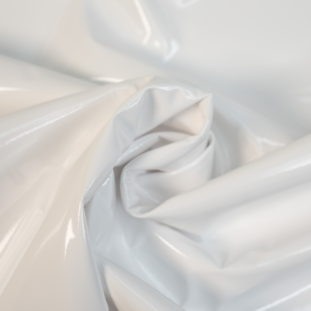 Ein Lackleder-Imitat mit einer glatten, spiegelnden Hochglanz-Oberfläche und einer leichten Elastizität durch die Geweberückseite. Das Material ist dünn, flexibel und angenehm zu verarbeiten, vielseitig einsetzbar für Deko, Kostüme & Bekleidung