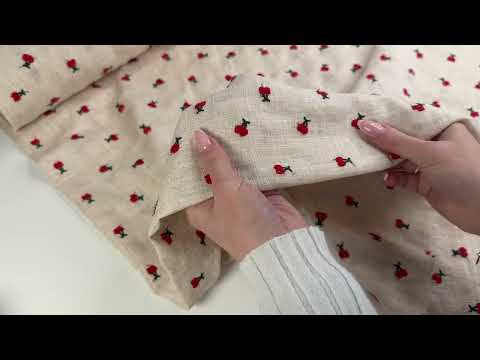 Viskose Leinen Stickerei Kirschen natur