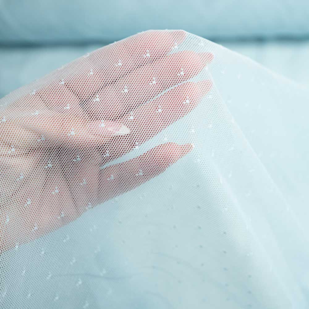 Dieser elastische Mesh ist besonders weich und fühlt sich angenehm auf der Haut an. Mit seinem Pünktchen Design eignet er sich perfekt für die Herstellung von Kleidung.