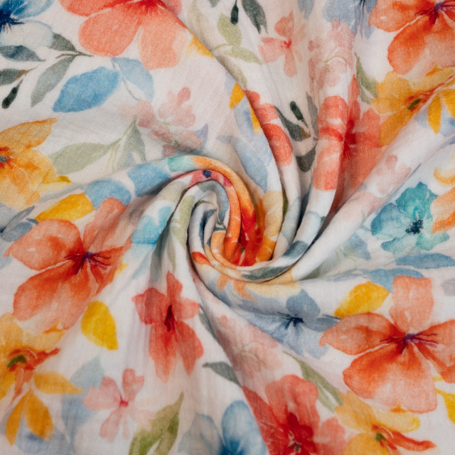 Musselin Double Gauze Blumenmeer orange