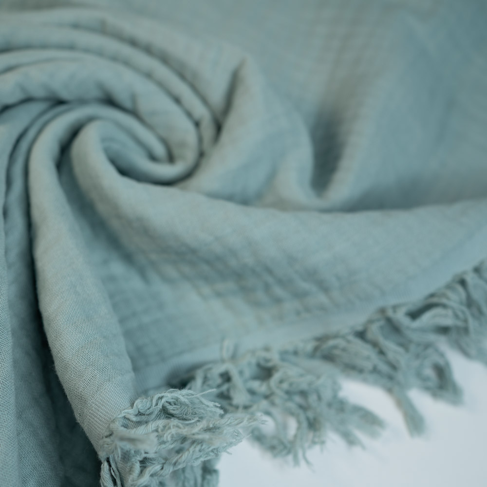 Dieser vierlagige Musselin Stoff aus Baumwolle hat eine dekorative Fransenkante (An beiden Webkanten). Insgesamt ist Musselin Baumwolle eine hervorragende Wahl für verschiedenste Textilprodukte z.B. Baby- und Dreieckstücher, Oberbekleidung, wie Hemden, Blusen, Kleider, Röcke, sowie für Deko, Accessoires, Bettwäsche, Vorhänge, Kissenbezüge etc.