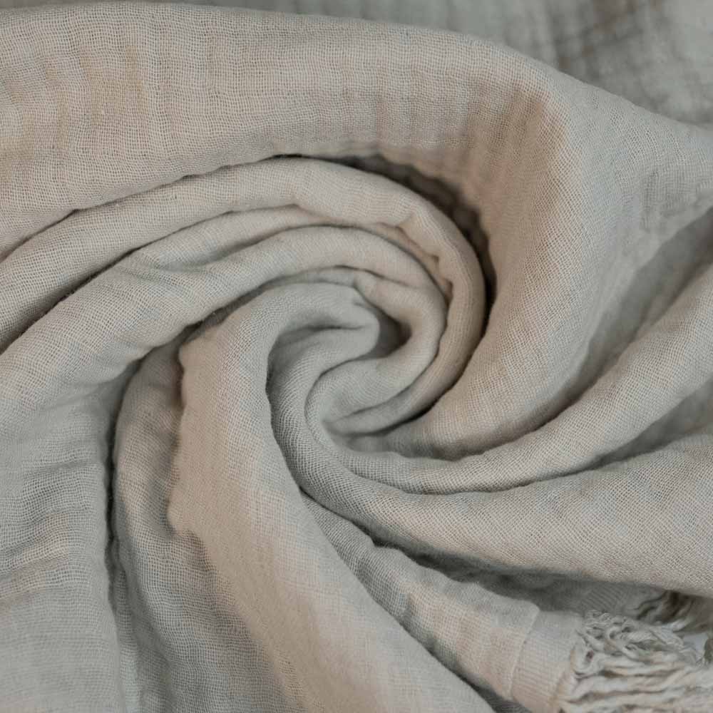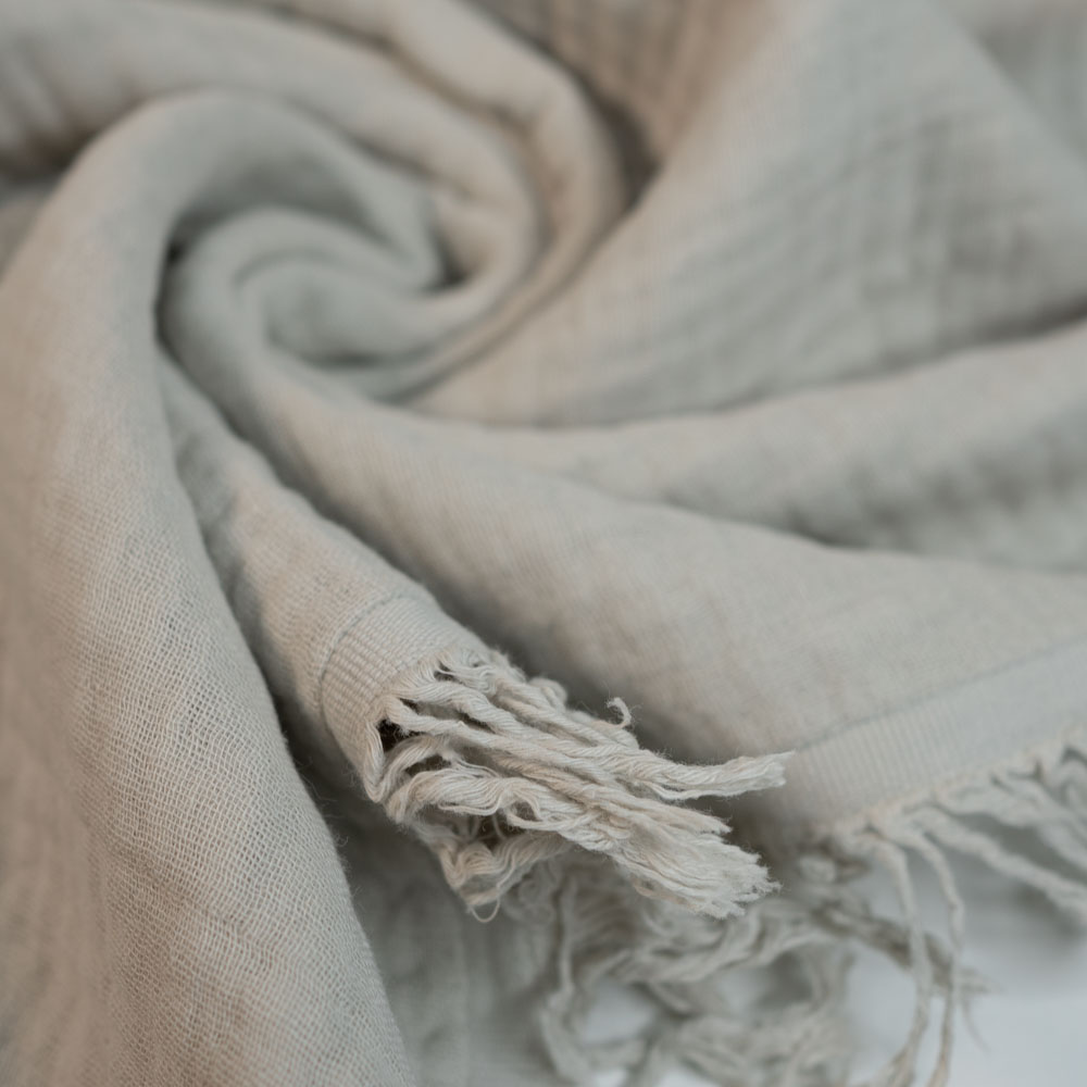 Dieser vierlagige Musselin Stoff aus Baumwolle hat eine dekorative Fransenkante (An beiden Webkanten). Insgesamt ist Musselin Baumwolle eine hervorragende Wahl für verschiedenste Textilprodukte z.B. Baby- und Dreieckstücher, Oberbekleidung, wie Hemden, Blusen, Kleider, Röcke, sowie für Deko, Accessoires, Bettwäsche, Vorhänge, Kissenbezüge etc.