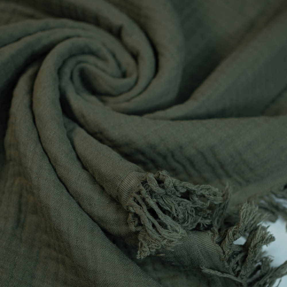 Dieser vierlagige Musselin Stoff aus Baumwolle hat eine dekorative Fransenkante (An beiden Webkanten). Insgesamt ist Musselin Baumwolle eine hervorragende Wahl für verschiedenste Textilprodukte z.B. Baby- und Dreieckstücher, Oberbekleidung, wie Hemden, Blusen, Kleider, Röcke, sowie für Deko, Accessoires, Bettwäsche, Vorhänge, Kissenbezüge etc.