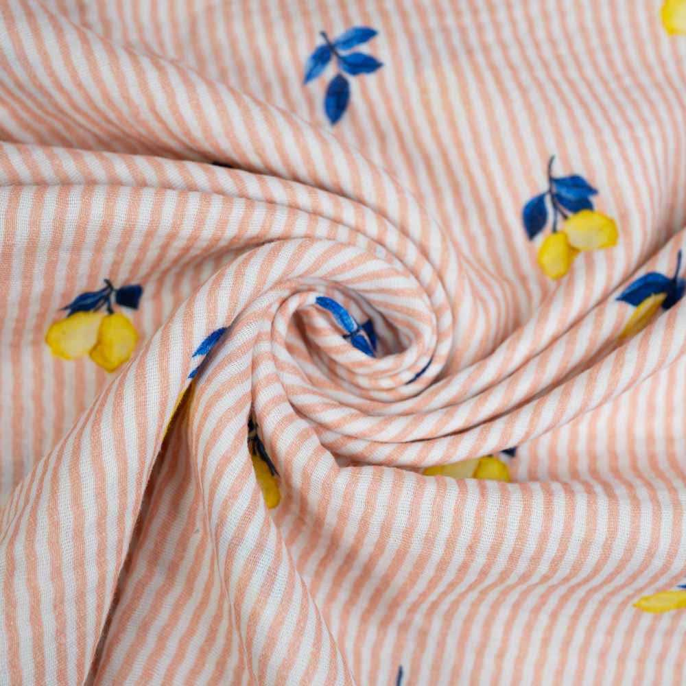 Musselin Double Gauze Zitrone pastellrosa