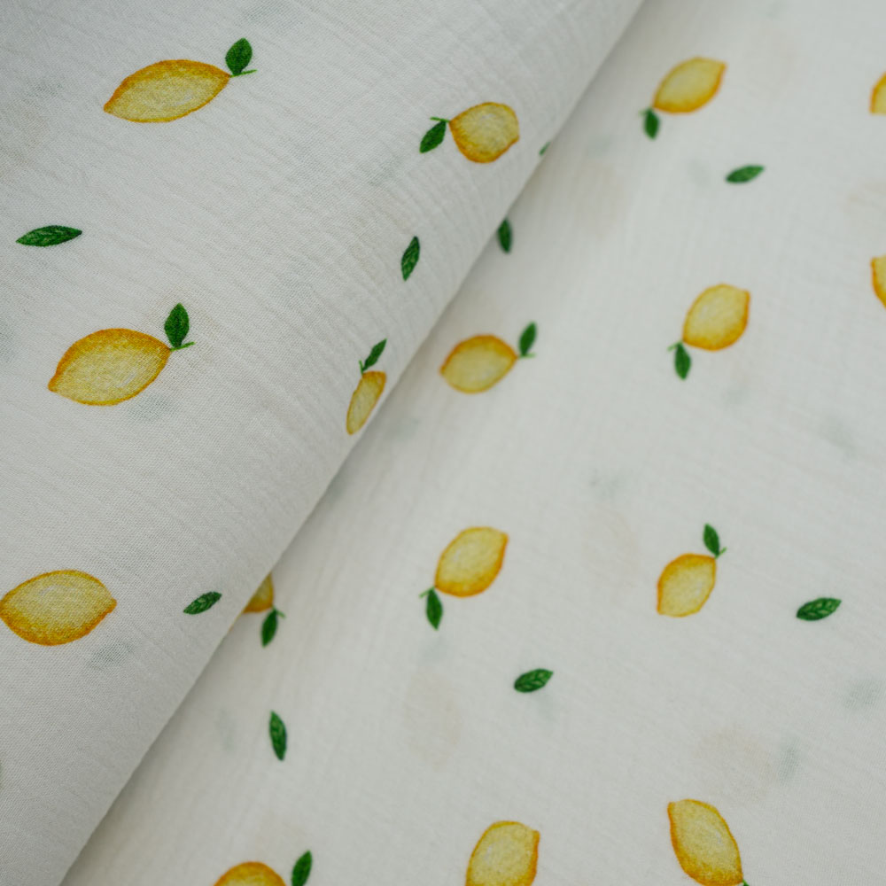 Musselin Double Zitrone weiß