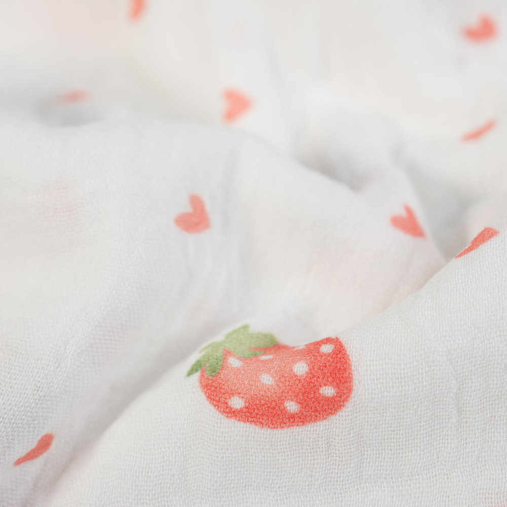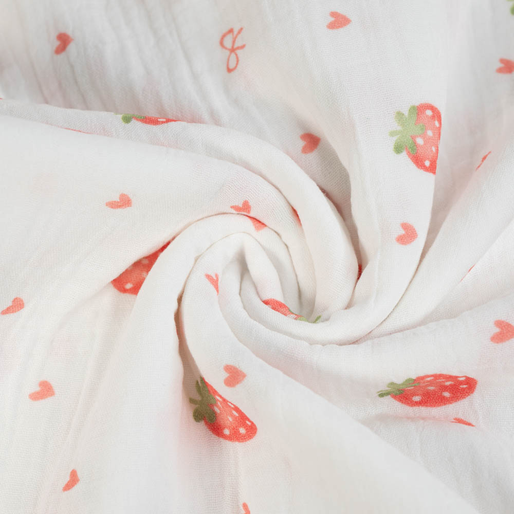 Musselin Double Gauze 250cm Überbreite Erdbeeren weiß