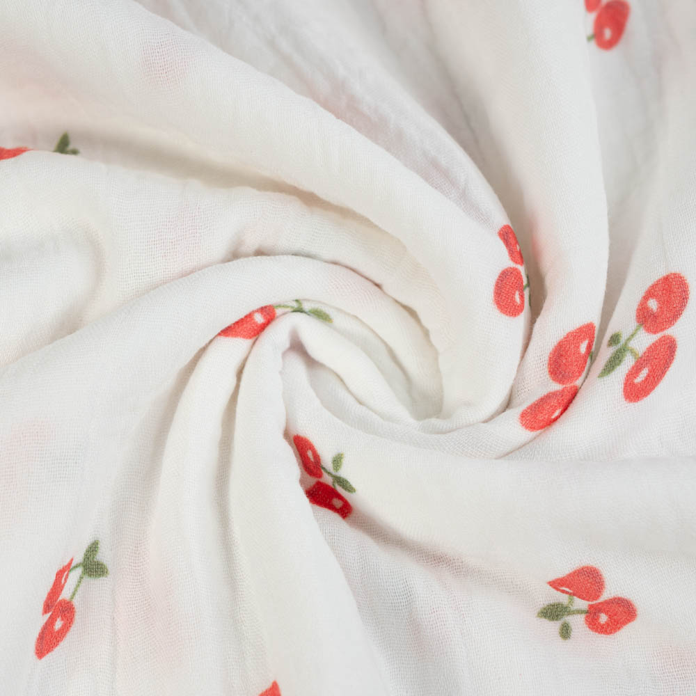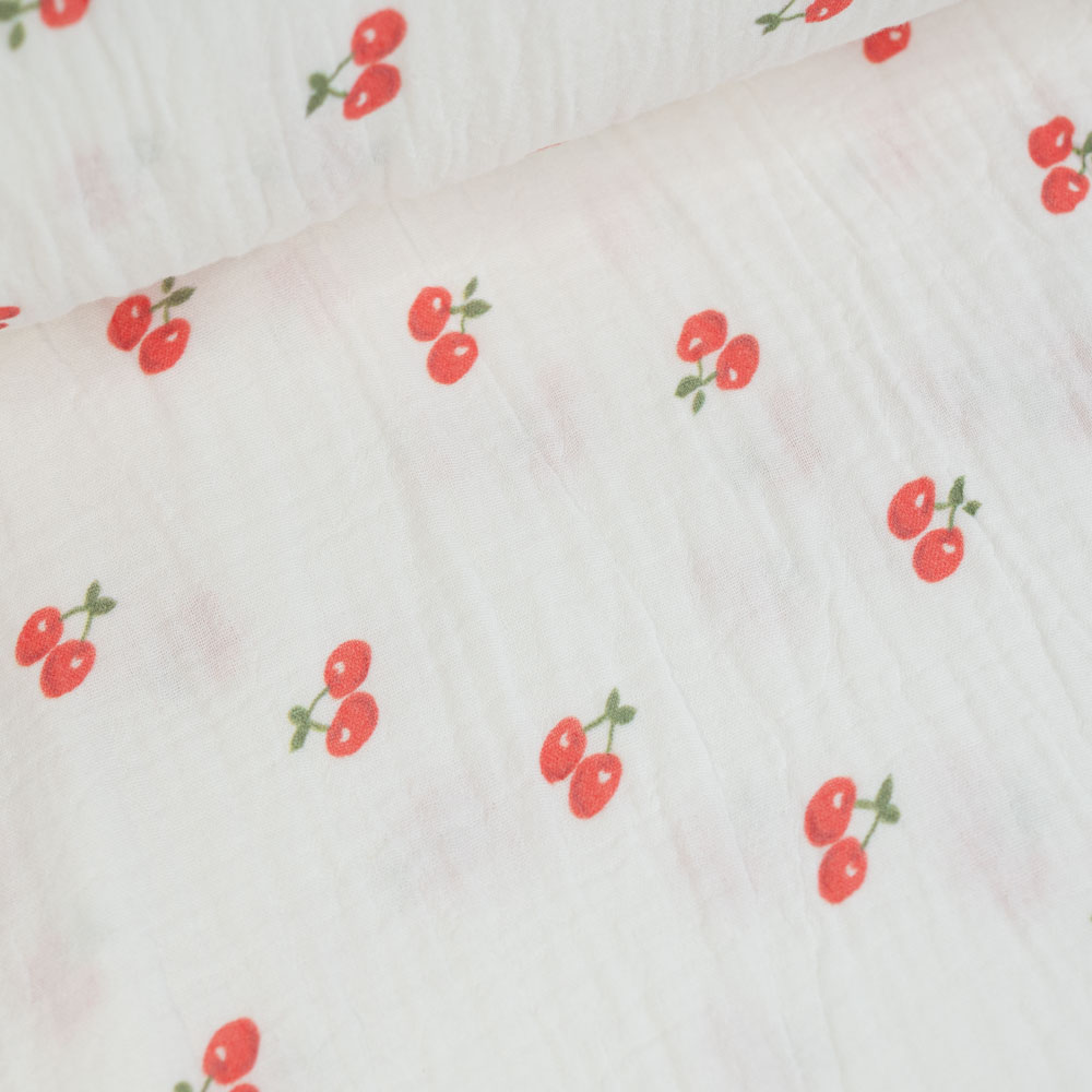 Musselin Double Gauze 250cm Überbreite Kirschen weiß