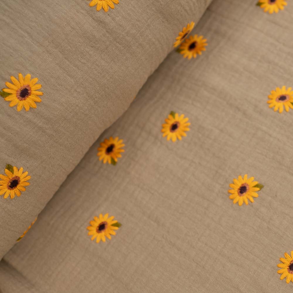 Musselin Double Gauze Stickerei Sonnenblume beige