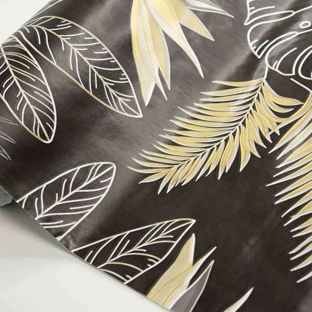 Beschichteter Stoff Palmenblätter dunkelbraun