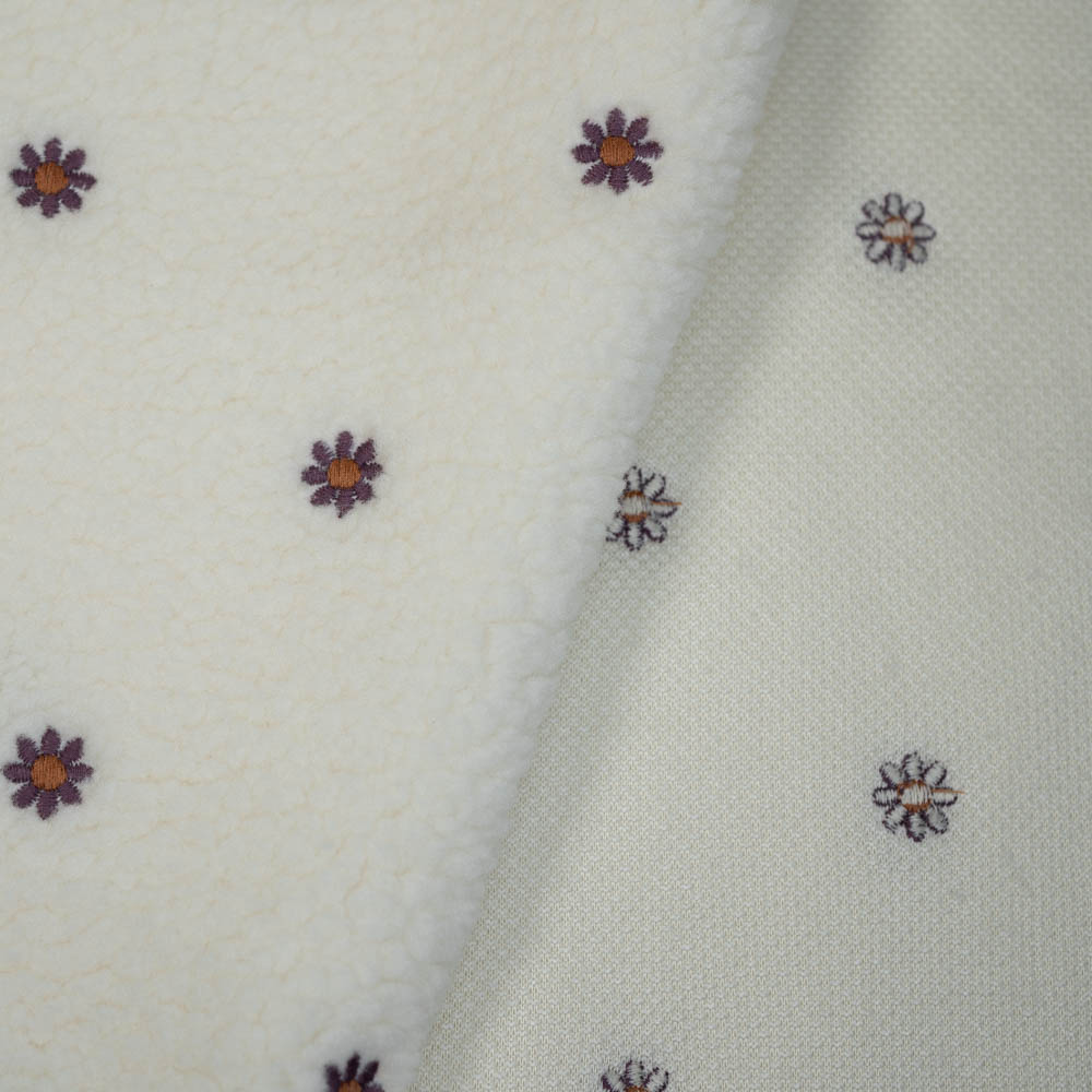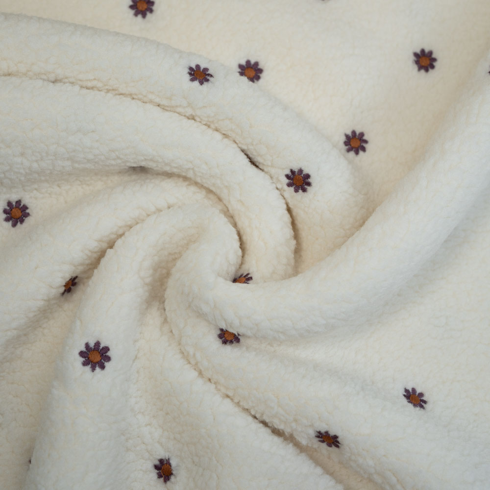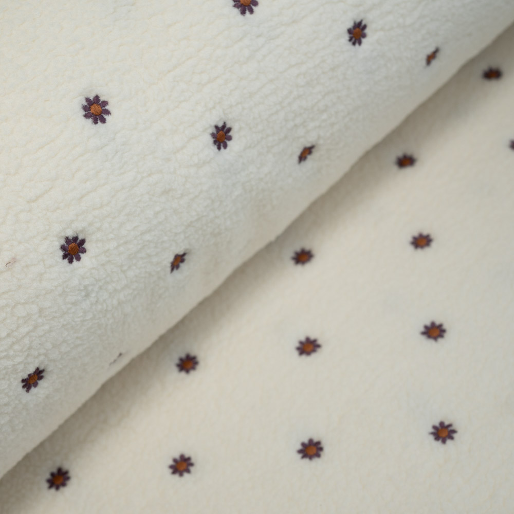 Teddyplüsch bestickt Gänseblümchen natur