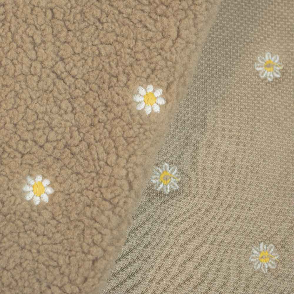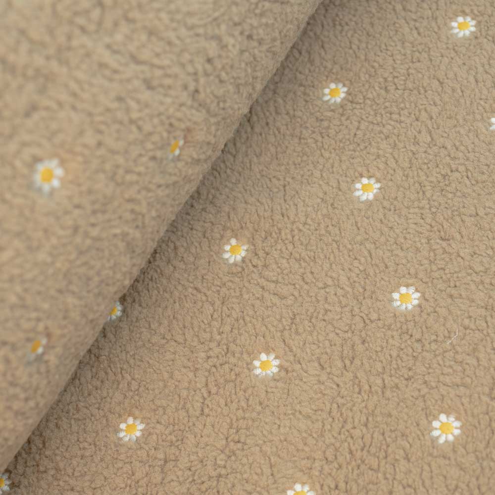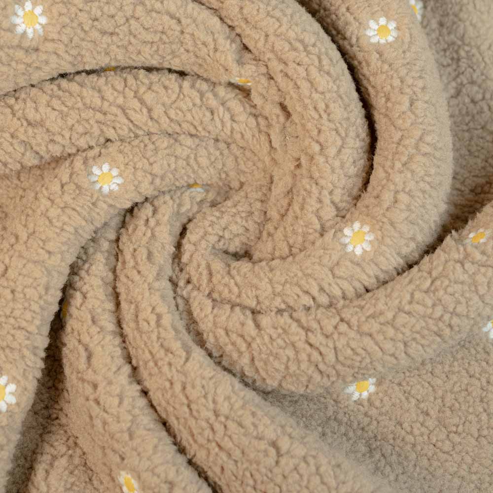 Teddyplüsch bestickt Gänseblümchen beige
