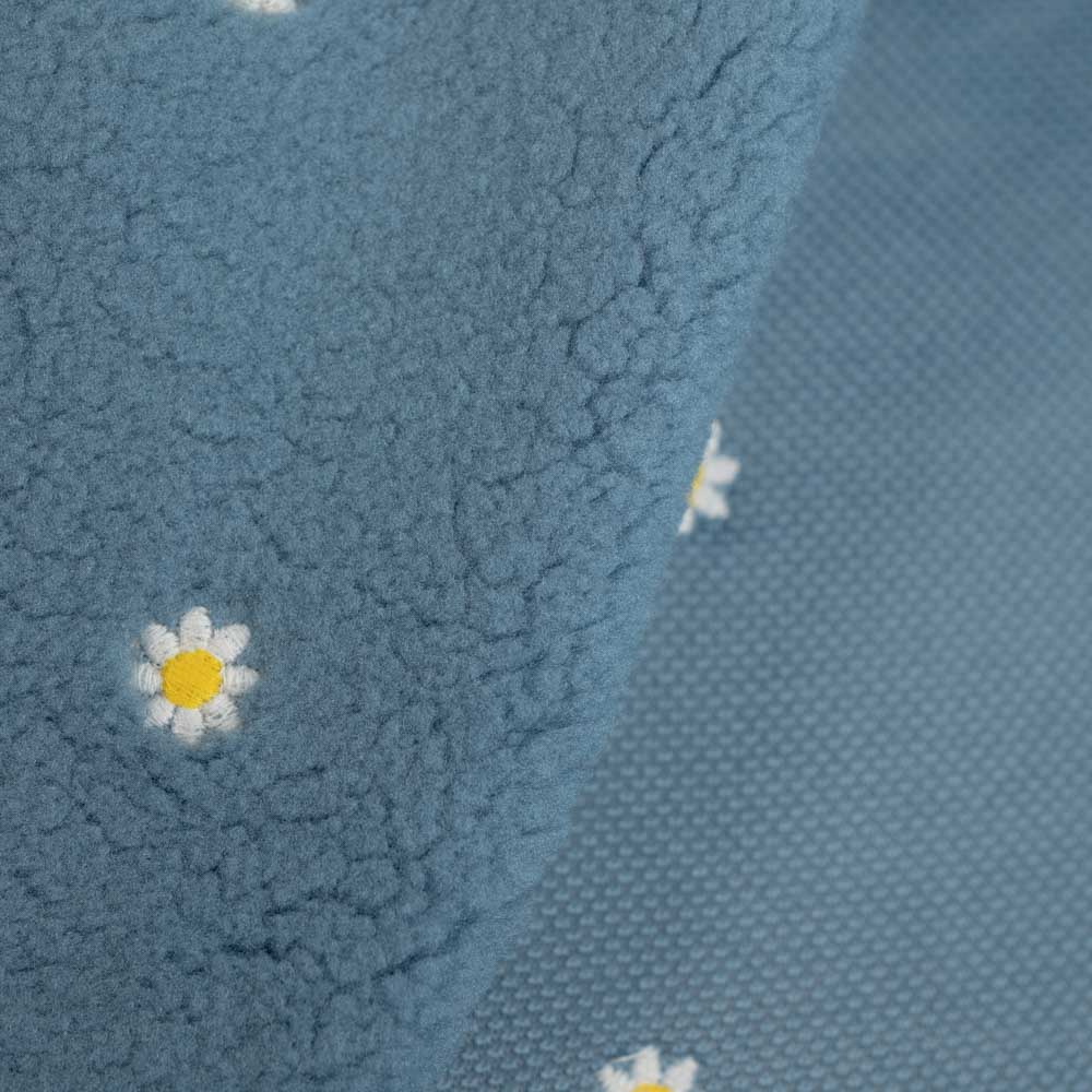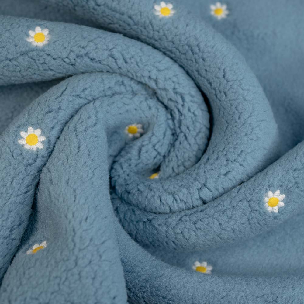Teddyplüsch bestickt Gänseblümchen jeansblau