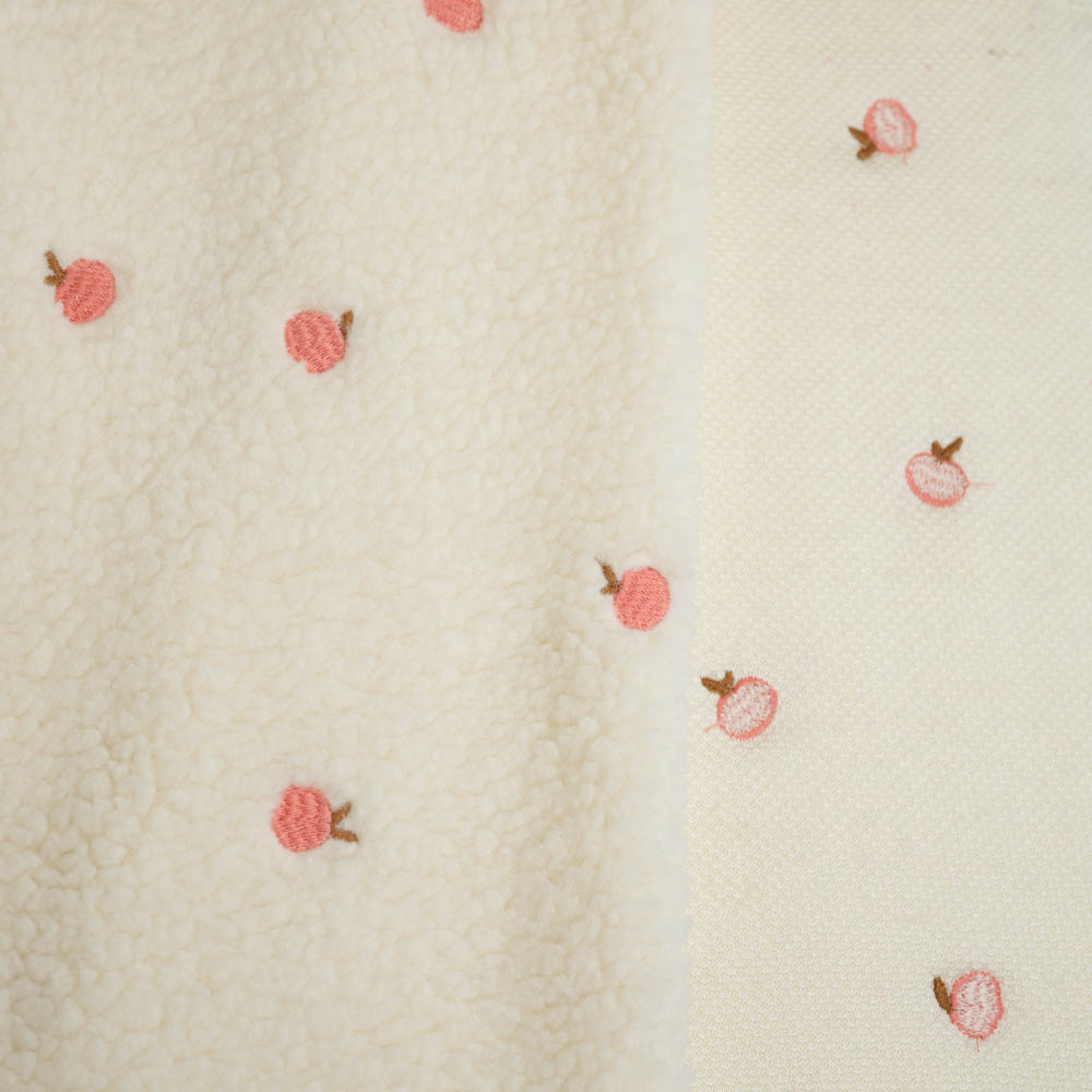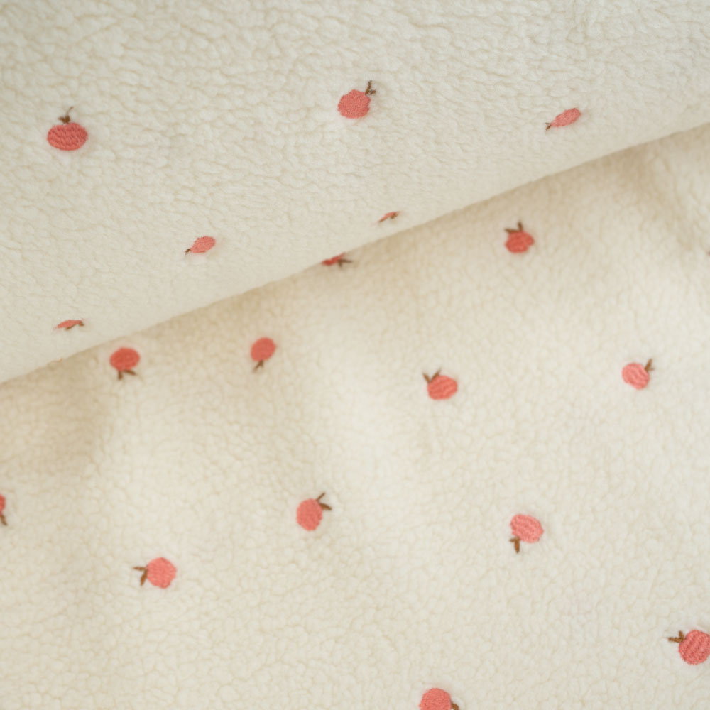 Teddyplüsch bestickt Pfirsich natur