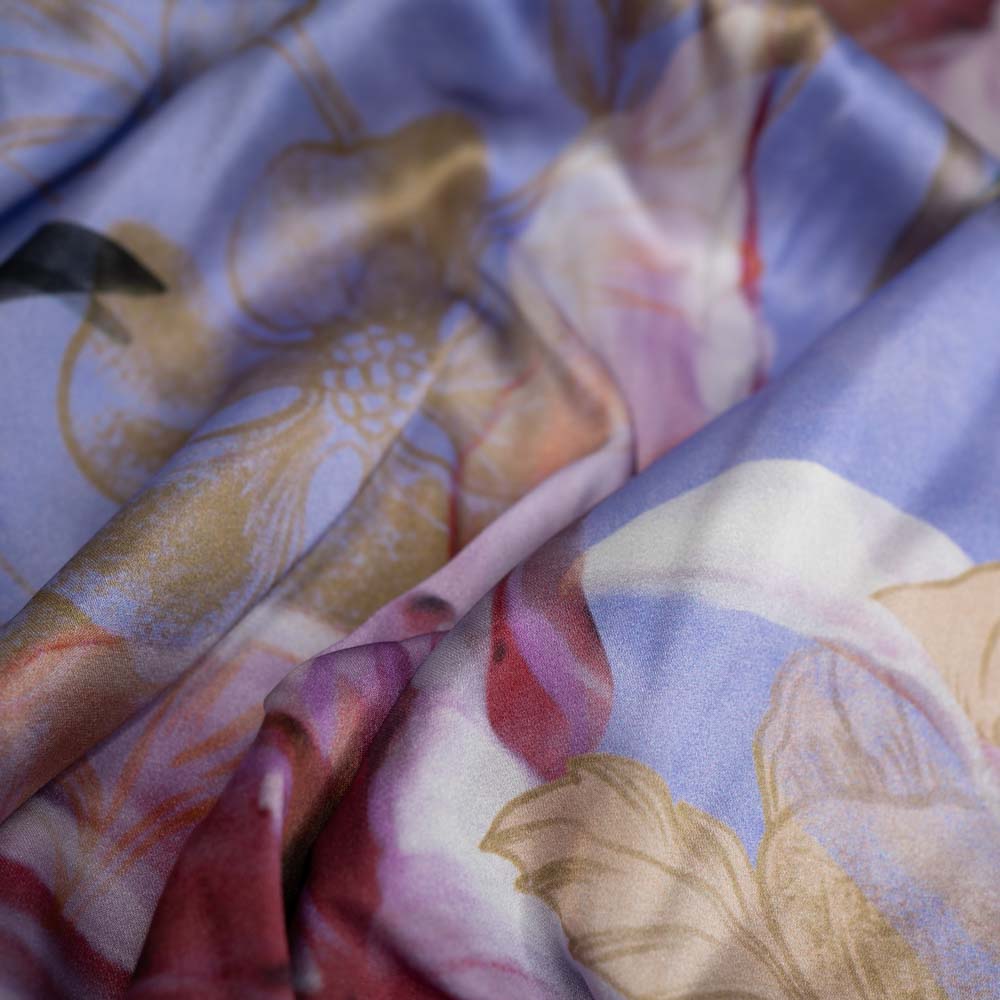 Hochwertige elastische Seide aus Italien in lebendigen Farben und mit außergewöhnlichen Motiven. Angenehm weich und leicht auf der Haut zu tragen.