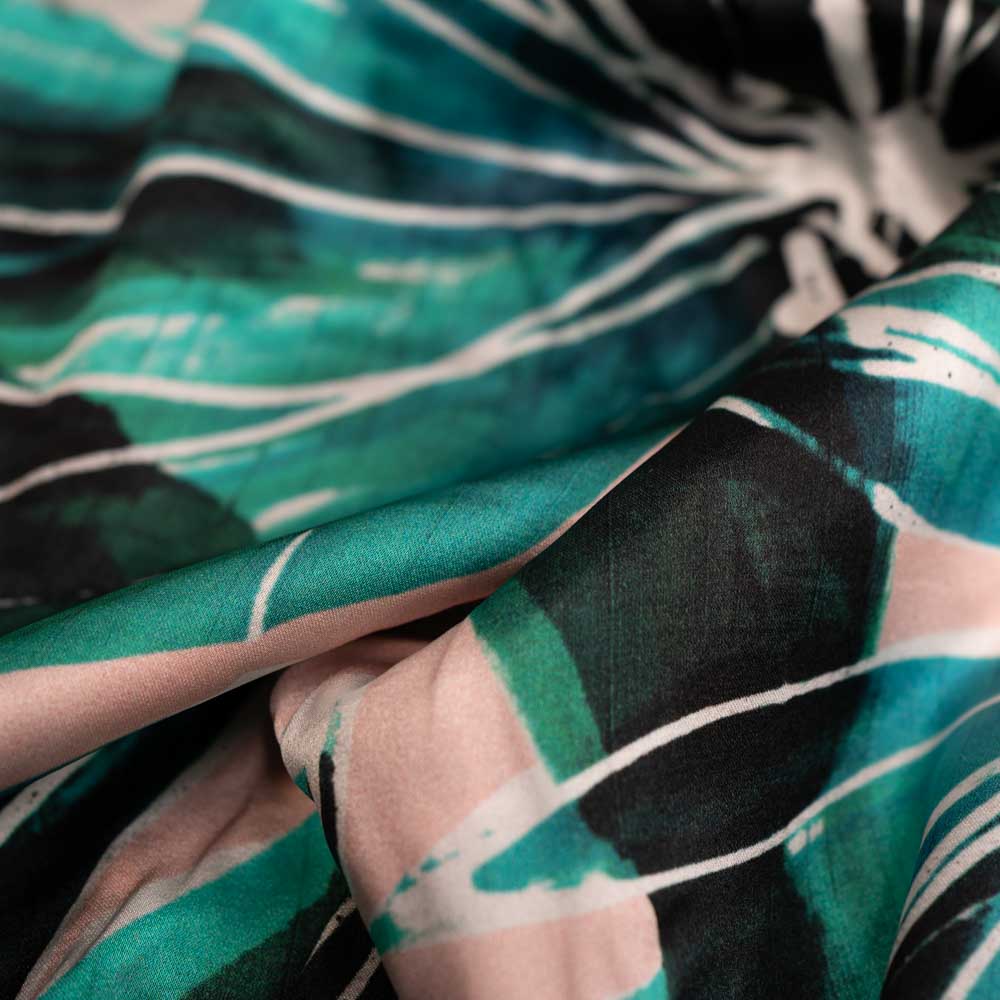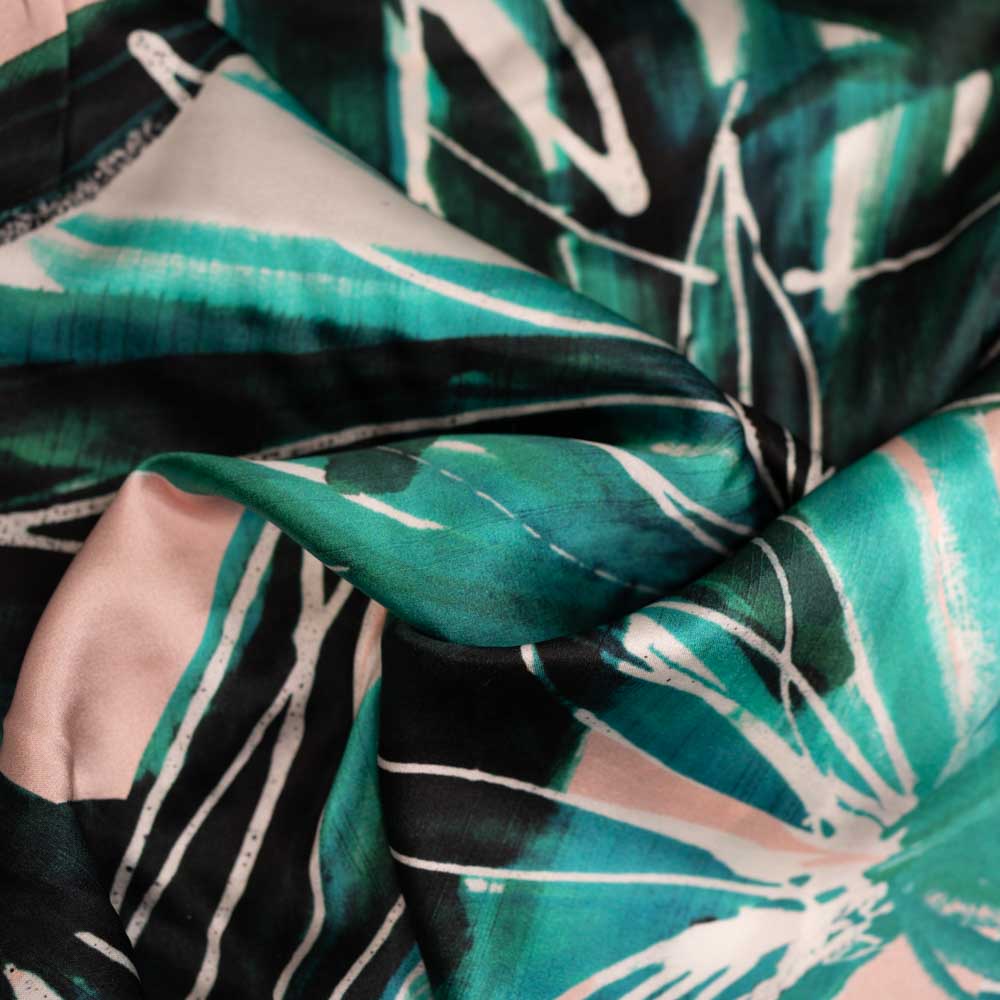 Hochwertige elastische Seide aus Italien in lebendigen Farben und mit außergewöhnlichen Motiven. Angenehm weich und leicht auf der Haut zu tragen.