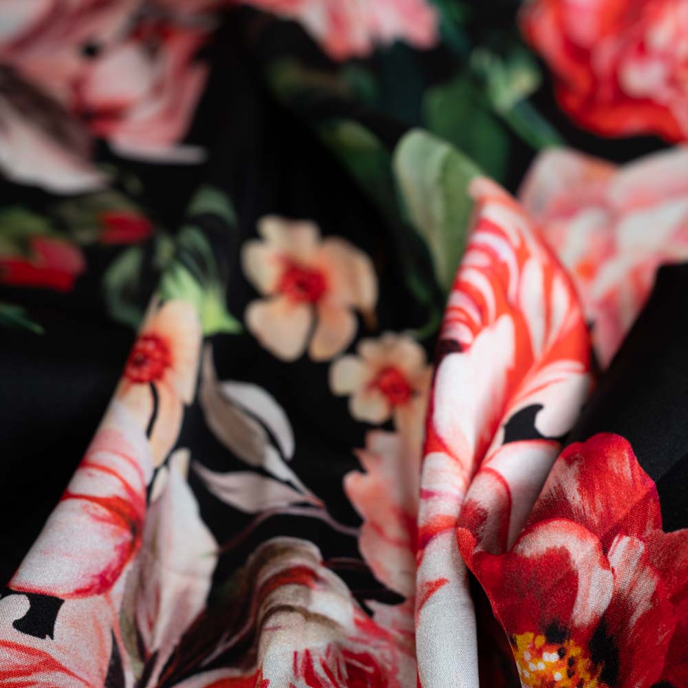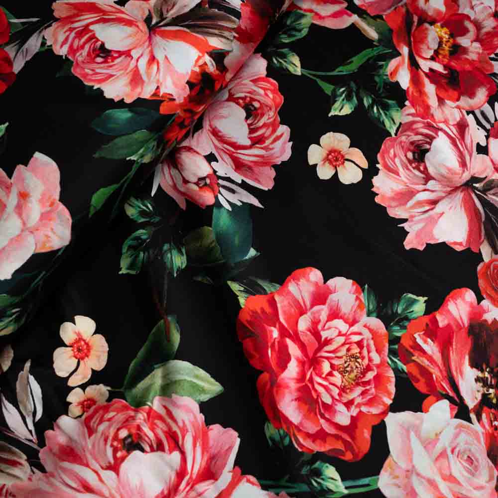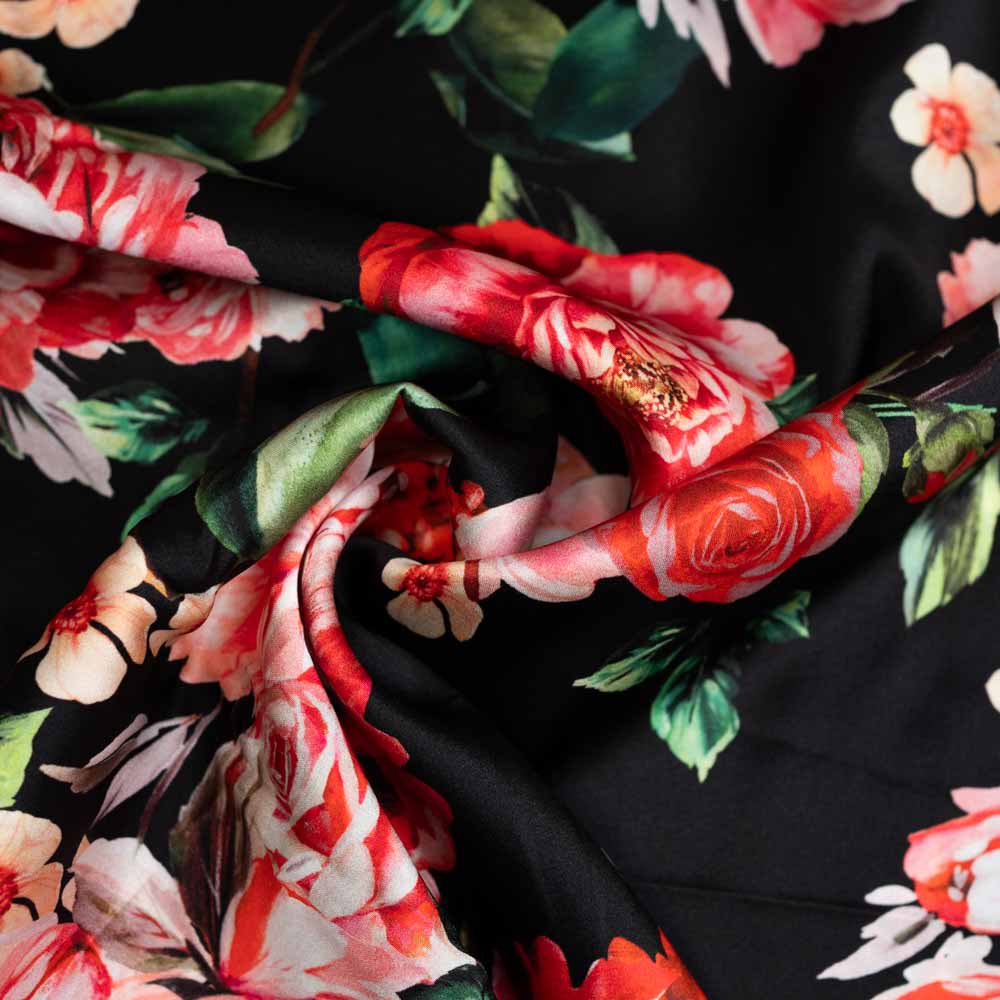 Italienische Seide Stretch Rosen schwarz