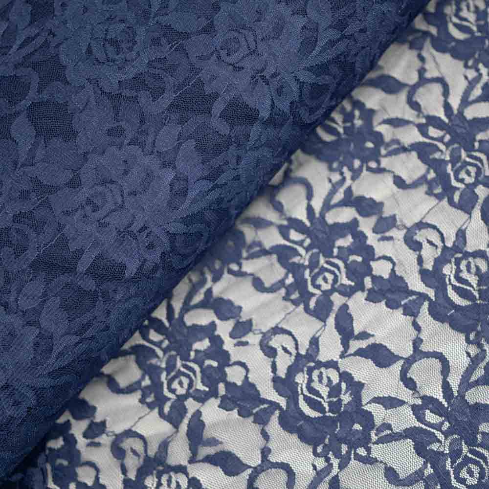 Italienische Spitze STRETCH Rosen dark navy