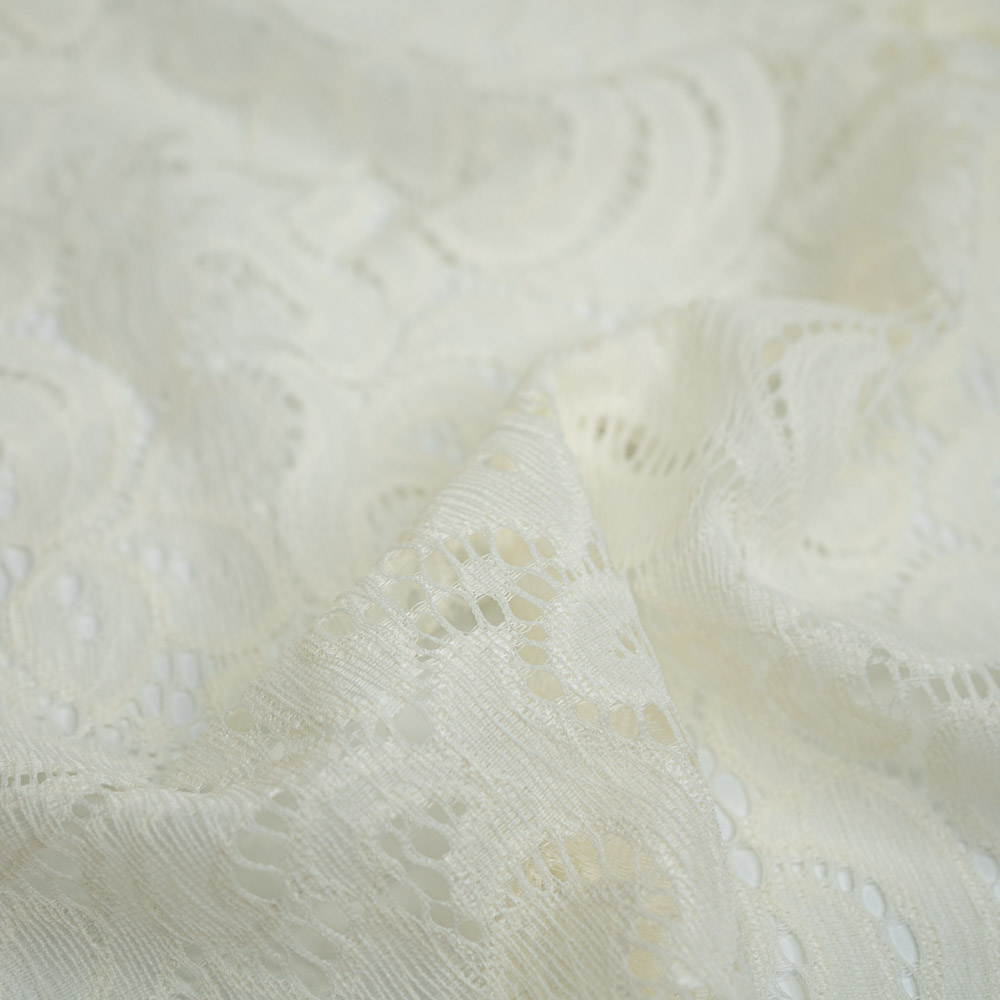 Das verspielte florale Muster machen diese Spitze aus Italien zu einem Kunstwerk. Sie ist angenehm zu tragen und sehr elastisch. Ideal für edle Abendkleider, Brautmode oder elegante Dessous, verleiht sie jedem Kleidungsstück einen Hauch von Luxus und Raffinesse.