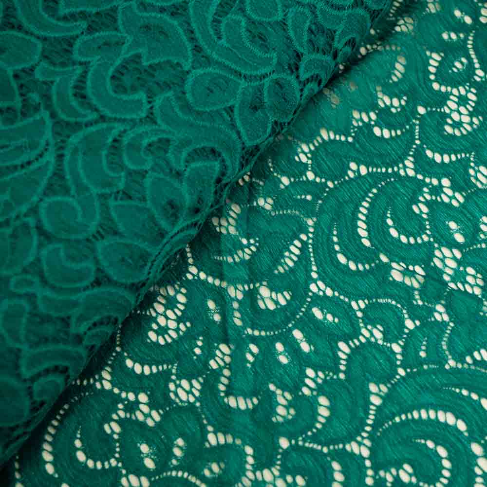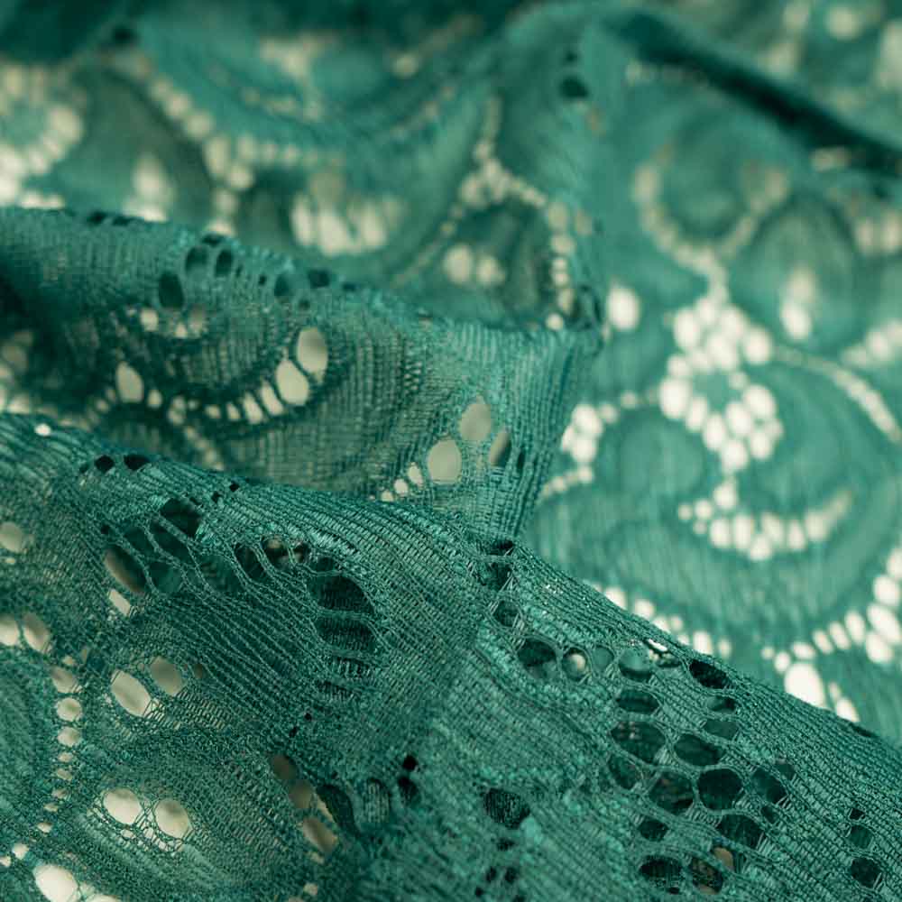 Das verspielte florale Muster machen diese Spitze aus Italien zu einem Kunstwerk. Sie ist angenehm zu tragen und sehr elastisch. Ideal für edle Abendkleider, Brautmode oder elegante Dessous, verleiht sie jedem Kleidungsstück einen Hauch von Luxus und Raffinesse.