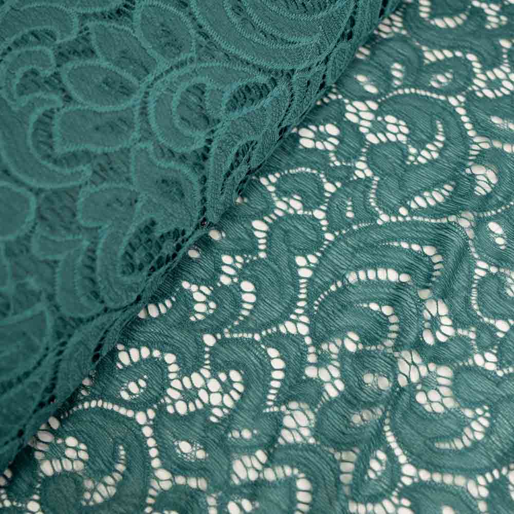 Das verspielte florale Muster machen diese Spitze aus Italien zu einem Kunstwerk. Sie ist angenehm zu tragen und sehr elastisch. Ideal für edle Abendkleider, Brautmode oder elegante Dessous, verleiht sie jedem Kleidungsstück einen Hauch von Luxus und Raffinesse.