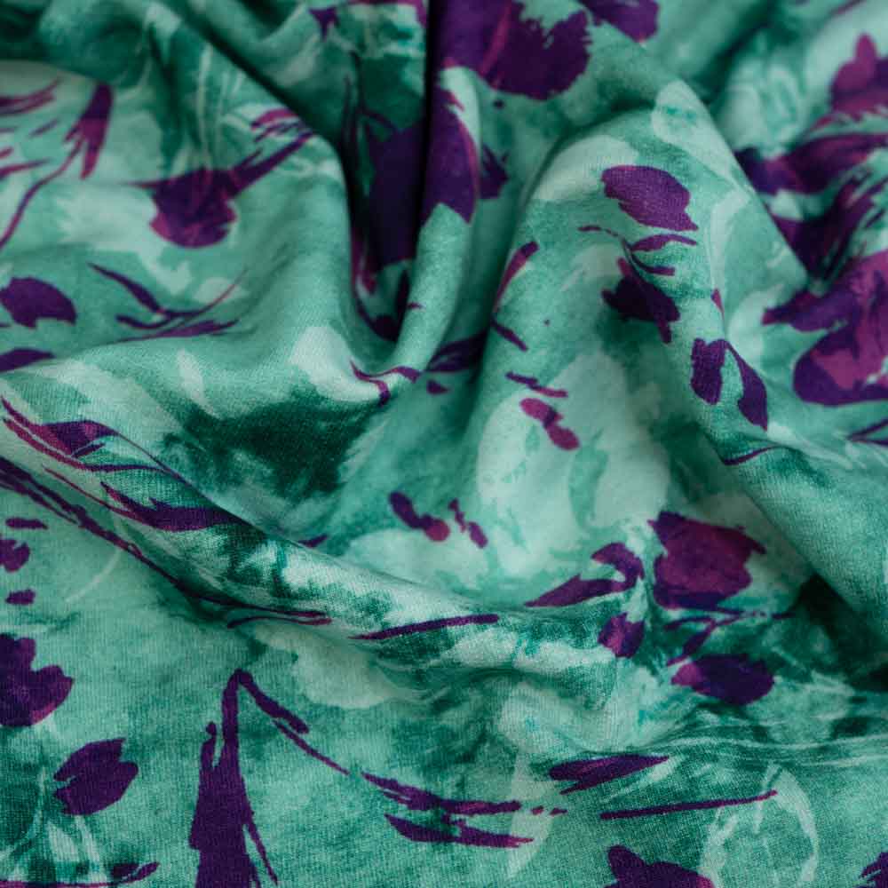 French Terry Sweat beerige Blumen mint