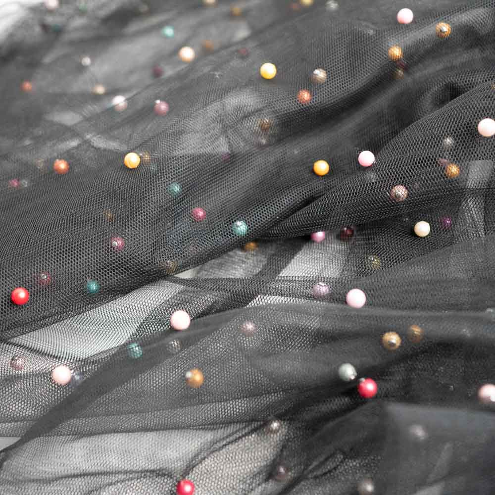 Dieser besondere Tüll vereint zarte Weichheit mit einer angenehmen Griffigkeit. Die aufgenieteten Perlen verleihen ihm nicht nur eine exklusive Optik, sondern auch ein höheres Gewicht, das für einen eleganten Fall sorgt. Perfekt für außergewöhnliche Kreationen – jetzt in vielen Farben exklusiv bei uns erhältlich!