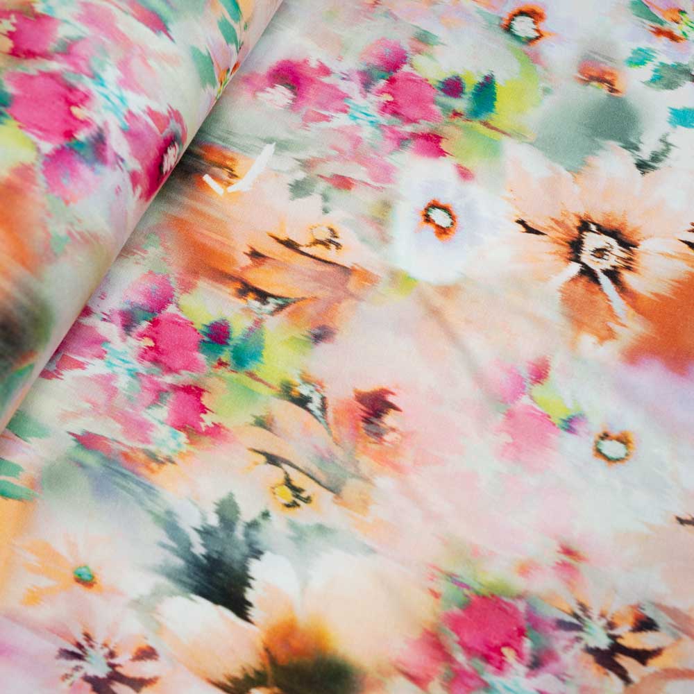 Viskosejersey Brushstripe Flower rosa