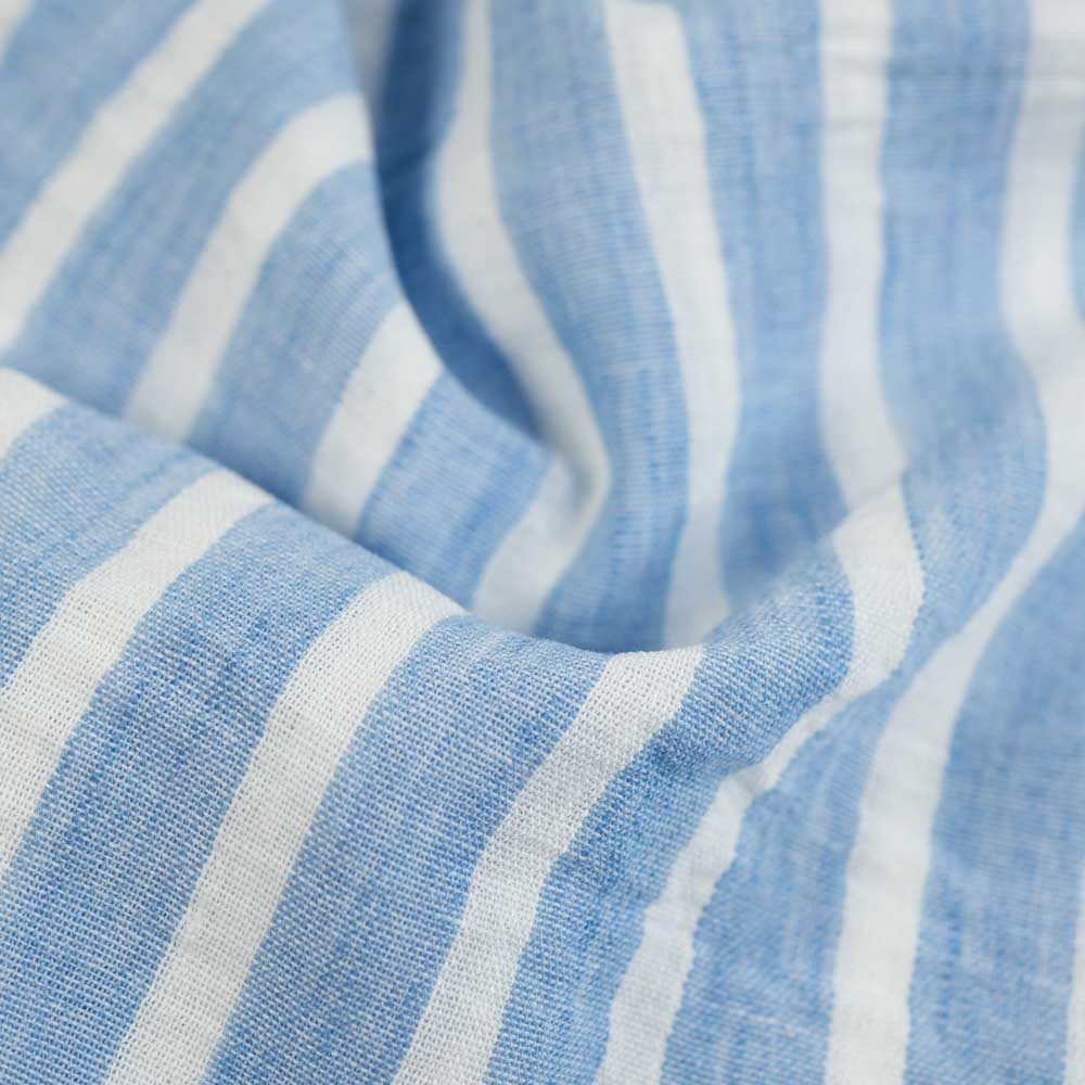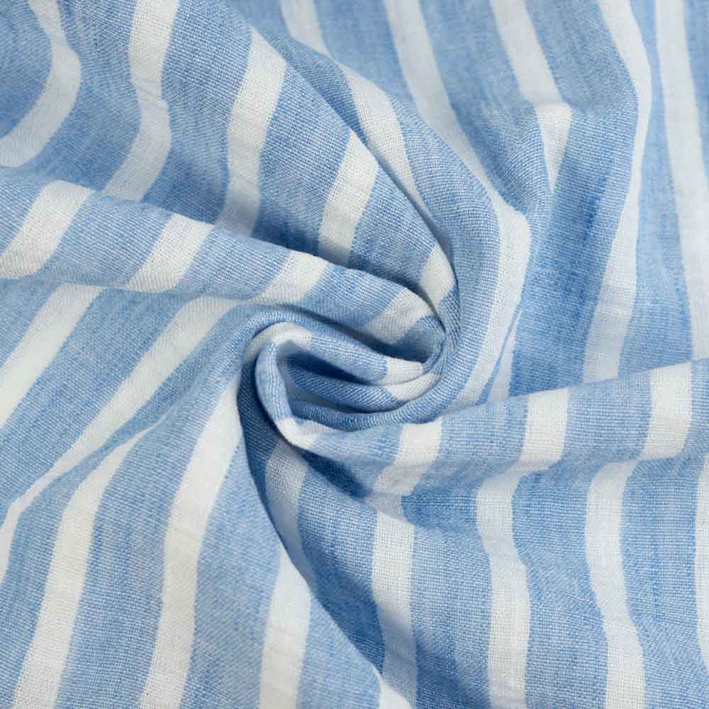 Eine weich fließende und zarte Webware im Leinen Look mit wunderschönen Vintage Streifen. Perfekt für Kleider, Röcke, Sommerhosen, Tops, Blusen.
