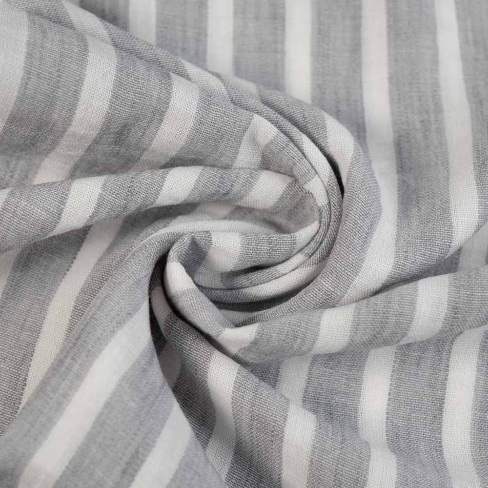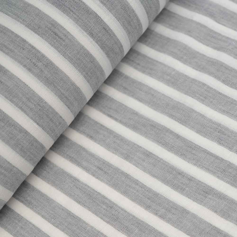 Eine weich fließende und zarte Webware im Leinen Look mit wunderschönen Vintage Streifen. Perfekt für Kleider, Röcke, Sommerhosen, Tops, Blusen.