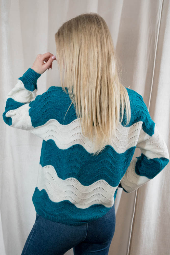 Ein super weicher Strickpullover mit Wellen in verschiedenen Farben.