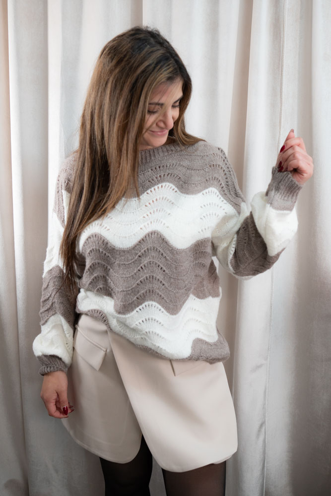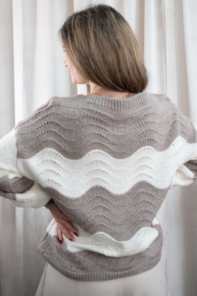 Ein super weicher Strickpullover mit Wellen in verschiedenen Farben.