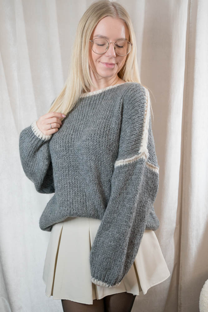 Ein super weicher Strickpullover mit Kontrastnaht in verschiedenen Farben.