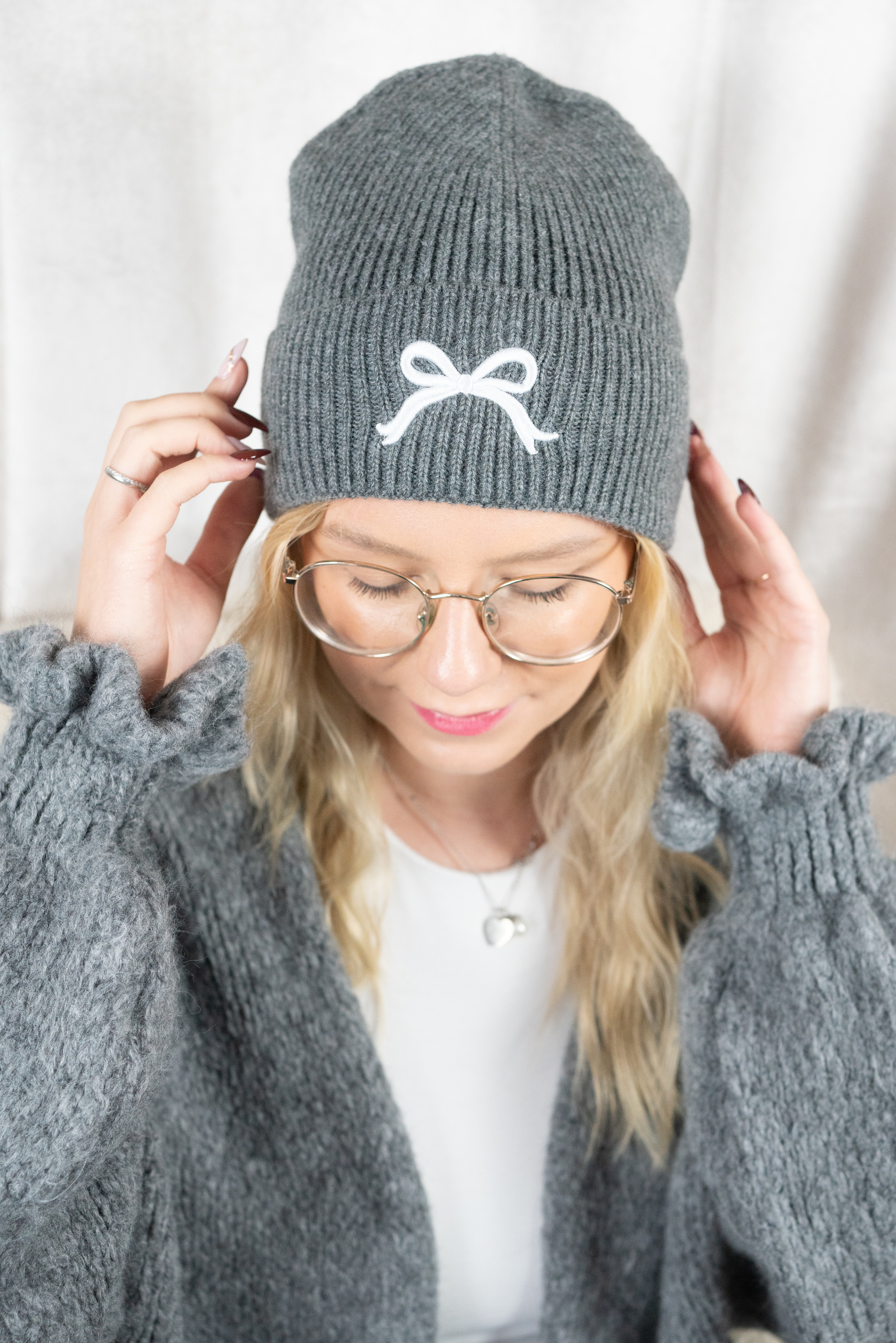 Strickmütze Schleife anthra