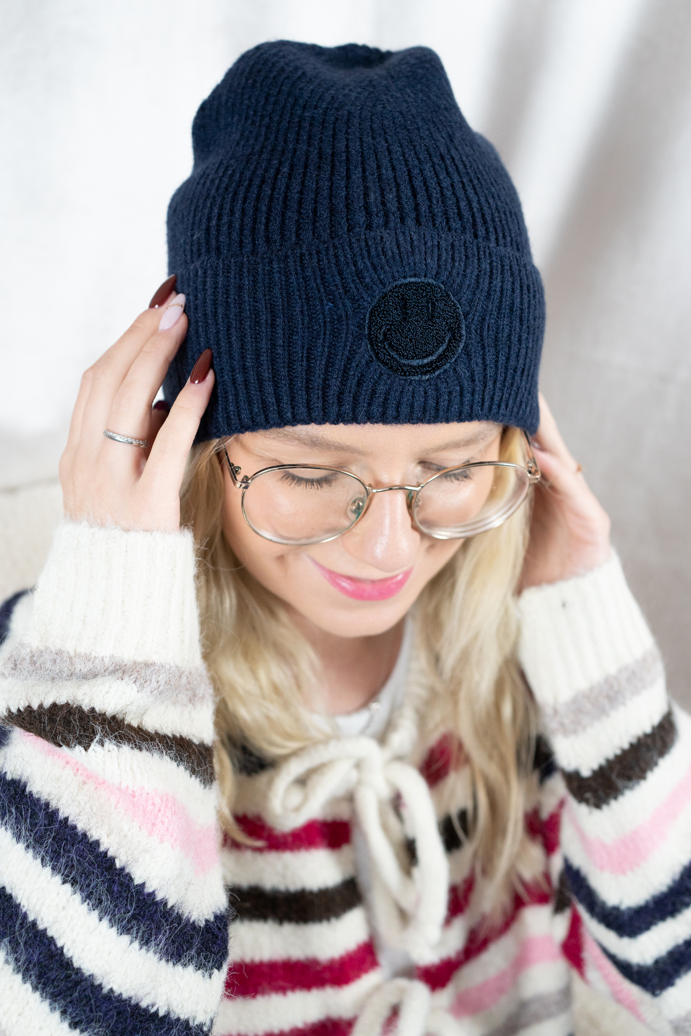 Strickmütze Smiley navy